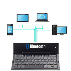 The portable folding keyboard features an ultra-thin design, making it easy to carry in a pocket or bag. Use it with the adjustable stand to achieve a comfortable screen viewing angle. Its near-standard key size supports accurate and responsive typing, while quiet key presses help maintain focus. Suitable for travel and business trips, this Bluetooth keyboard pairs smoothly with compatible wireless devices. Capture your ideas efficiently with this practical keyboard. 11.89′ L x 3.82′ W x 3.82′ H
