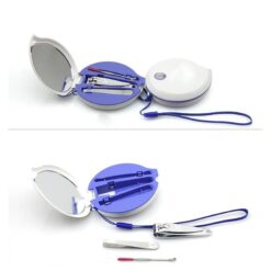 This Cosmetic Nail Care Set contains stainless steel nail tools in a plastic case with Snap button closure. It comes with 4 tools: nail clippers, mirror, ear pick, and eyebrow clipper. Customize with your imprint and choose the case color. Perfect as a promotional gift. 2 3/8″ L x 2 6/8″ W x 6/8″ H