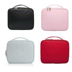 This waterproof PU leather makeup bag has durable metal zippers for easy cleaning and secure storage. It can hold various beauty products and daily essentials, perfect for everyday use or travel. The compact design fits easily into handbags and the stylish handle prevents hand fatigue. Available in multiple bright colors. 7.9″ L x 5.14″ W x 5.14″ H