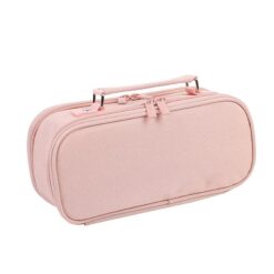 This pencil case can hold 60 pens or pencils and has a mesh bag for smaller stationery items like erasers, stickers, paper clips, and small staplers. Made from durable canvas, it is dust-proof and easy to clean. It has rivet-reinforced handles and double zippers for secure storage. 9.5″ L x 4.7″ W x 2.95″ H