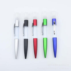 Quantity: 1,000 3,000 5,000 10,000 50,000 Your Price (each): $0.83 $0.74 $0.69 $0.58 $0.46 Crafted from durable ABS material, this accessory is a twist-action pen and mini spray bottle in one, holding 5ml of liquid. Perfect for sanitizer or perfume, it’s versatile and elegant, ideal for your purse, travel bag, planner, desk, or car. With a convenient clip for easy attachment, it’s a thoughtful gift for anyone. Elevate your essentials with this stylish and functional accessory for office, school, errands, or travel. 5.5′ L