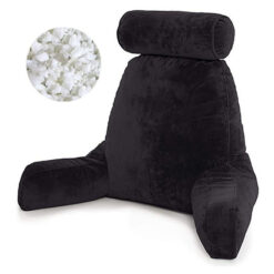 Luxurious foam reading pillows with customizable comfort. Shredded memory foam molds to your liking, lighter and airier than solid foam. Zippered velour cover with carry handle, removable and machine washable. Perfect for reading in bed, lounging on the sofa, or sleeping upright for nasal congestion or acid reflux. Also great for elevating legs, arms, or back for bed rest. 25.59′ L x 18.11′ W x 18.11′ H