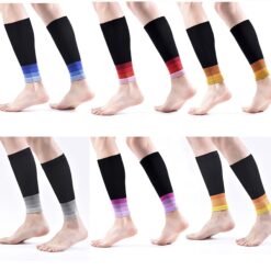 Our compression sleeve keeps muscles warm, reduces injury risk, and improves performance. It provides breathable support, enhances blood flow in leg muscles, and prevents cramping, fatigue, soreness, and swelling. Essential for athletes, it also helps with shin splints, calf cramps, and minor scratches. The sleeves improve venous return, promoting faster muscle recovery. Designed to support calf muscles and Achilles tendon, they are a must-have for enhancing athletic performance and preventing injuries. 9 7/8″ L x 5 1/8″ W x 5/8″ H