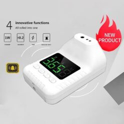 The Infrared Forehead Wall Mounted Thermometer is a versatile tool for various settings, using non-contact infrared technology for quick temperature readings within 0.39-3.94 inches. An audible alarm and red light indicate high temperatures above 37.15 or 99.5 degrees for safety. With an accuracy of 0.4 degrees and stable readings on the large LCD screen, this thermometer is reliable for temperature monitoring. 4 3/4″ L x 2 5/8″ W x 6 1/8″ H