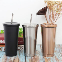 20oz Stainless Steel Tumbler with Lid and Straw, made of high quality 18/8 grade Stainless Steel. Double-wall with vacuum seal keeps drinks hot or cold for up to 12 hours. Threadless lid prevents spills and is easy to open/close. Non-slip bottom, non-toxic, no metal taste or rust. stainless steel straws and straw brush. Optional colored straw. 2.9′ L x 2.9′ W x 2.9′ H