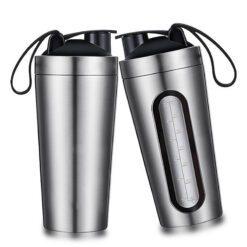 Metal body with visible window, blending with blender balls for replenishment and smoothies. Leak-proof clamp-on cover with silicone seal and metal ring. Easy to open and carry with flexible handle. Precision-sized triphenylmethane material, 23.6 ounces, perfect for mixing milk, coffee, or juice at the gym. Great gift for friends and family. 8.66′ L x 3.54′ W x 3.54′ H