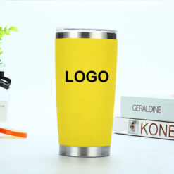 This 24oz tumbler is made of high-quality food-grade double layer PS material without any BPA. It has a large capacity kettle with a widened and thickened cup mouth for safer pouring and easier cleaning. The screw-in splash-proof lid comes with matching straws that are anti-fouling. The thickened cup bottom is stable and not easily breakable. It fits all car cup holders and is easy to carry with its conical shape and easy to grip design. This tumbler is a great product to promote your brand. 8.25′ L x 4′ W x 4′ H