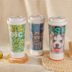 This color-shifting tumbler responds to cold water by activating swirling confetti patterns inside the cup. It excludes BPA, is dishwasher-safe, and works well for mood-enhancing use. The color transformation also occurs at room temperature. Express your style with these playful tumblers and share them on social platforms. 6.8′ L x 3.86′ W x 3.86′ H