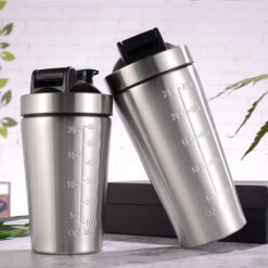 This large protein shaker is made from food-grade 304 stainless steel, offering durability and straightforward cleaning. It holds 25 ounces, excludes BPA, and comes with a stainless steel whisk ball to help blend smoothly. The rotating lid provides a secure seal, and the drinking spout opens and closes easily. Ideal for the gym, hiking, camping, or office use, the wide mouth accommodates ice and works with both hot and cold beverages. It also functions as a coffee mug, cocktail shaker, or everyday water bottle. 9.25′ L x 3.74′ W x 3.74′ H