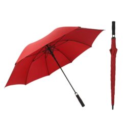 The auto-open color umbrella is vibrant and sturdy, featuring a straight handle that can be switched to curved. It is durable and lightweight with carbon fiber ribs and impact fabric. The EVA matte handle is ergonomic, non-slip, sweat-absorbent, and comfortable. Customize with your logo pattern. Meets Prop 65 standards and contains a matching cover. 47 1/4″ L x 38 3/4″ W x 38 3/4″ H