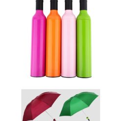 This high-quality 170T polyester bottle umbrella can be customized with your logo. It provides sun, wind, and rain protection with a non-slip rubber handle and wrist strap for easy carrying. Perfect as a promotional gift for parties or events. 2″ L x 12″ W