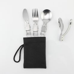 The Stainless Foldable Knife Fork & Spoon set is convenient, easy to clean, and perfect for on-the-go use. Made of stainless steel, these utensils have bacteriostasis and superior biological performance. Compact and lightweight, they offer excellent heat transfer and are ideal for any kitchen or outdoor adventure. 4.53″ L x 3.15″ W x 0.59″ H