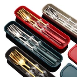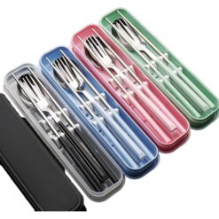 Our 18/8 stainless steel utensil set is rust and corrosion-resistant. It contains adult-sized fork, spoon, knife, and chopsticks with reinforced grip. Comes with carrying case, dishwasher-safe, lightweight, and easy to clean. Perfect for office meals, vacations, outdoor activities, and camping. 8.69″ L x 1.98″ W x 1.19″ H