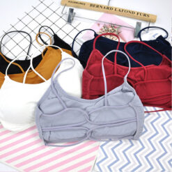 Breathable cotton sports bras in one size (A/B cup, under 132 lbs). Medium impact with quick-dry fabric and moisture-wicking technology. Crisscross strappy back design for perfect shape. Pair with high-waisted leggings or jeans for a stylish look. 1′ L