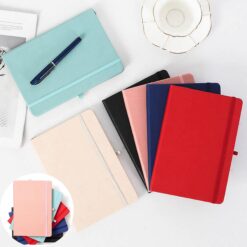 Stay organized with our sleek Matted-finish Notebook, featuring 80 high-quality pages. Ideal for office or personal use, it contains a matching bookmark and secure strap closure. The smooth matted finish adds sophistication to your note-taking. 8.27″ L x 5.71″ W