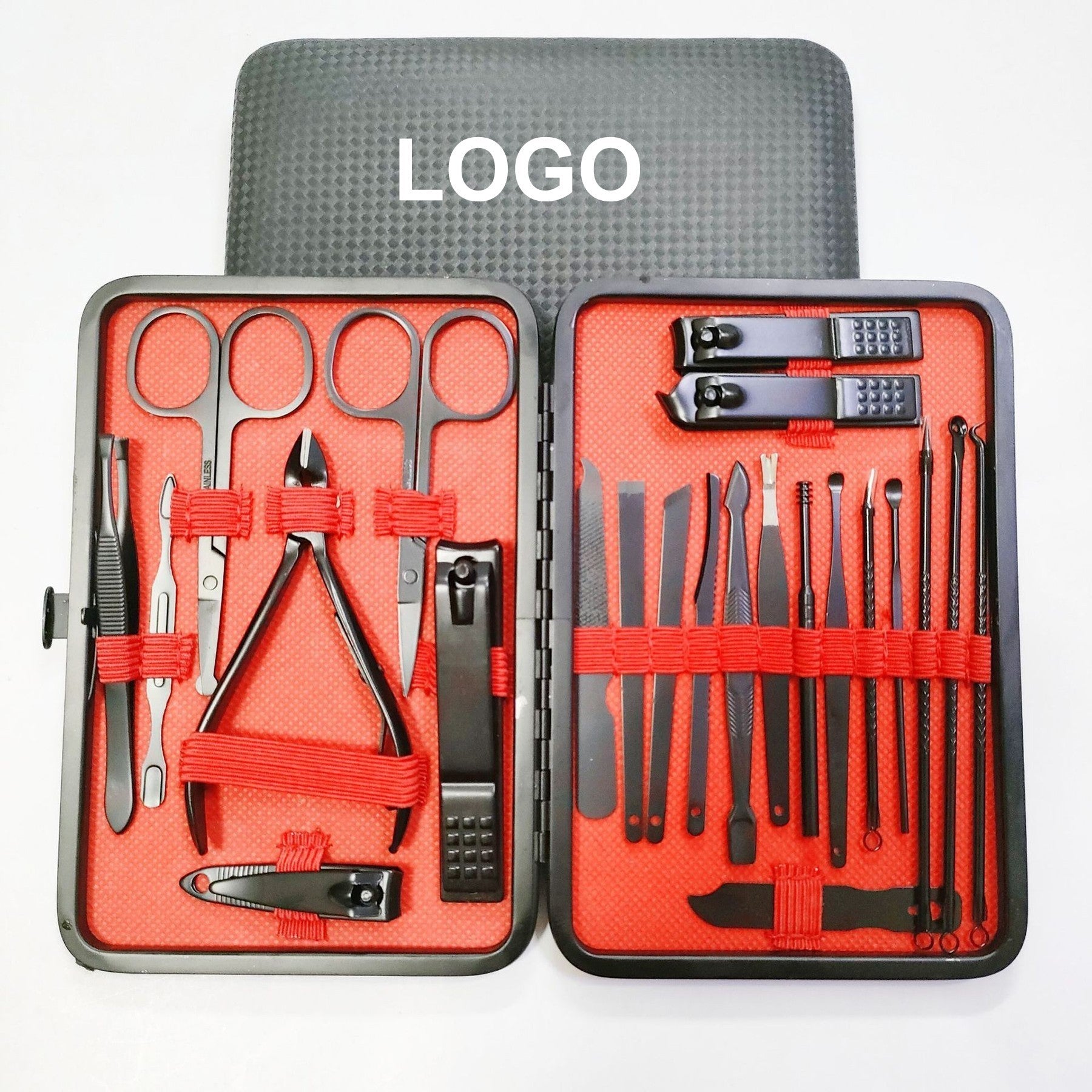 This set contains 16 carbon steel nail clippers for pedicures. The PU jackets can be printed with logos for branding. These products are ideal for daily use and promotions in different industries. 3 7/8″ L x 2 6/8″ W x 3/8″ H