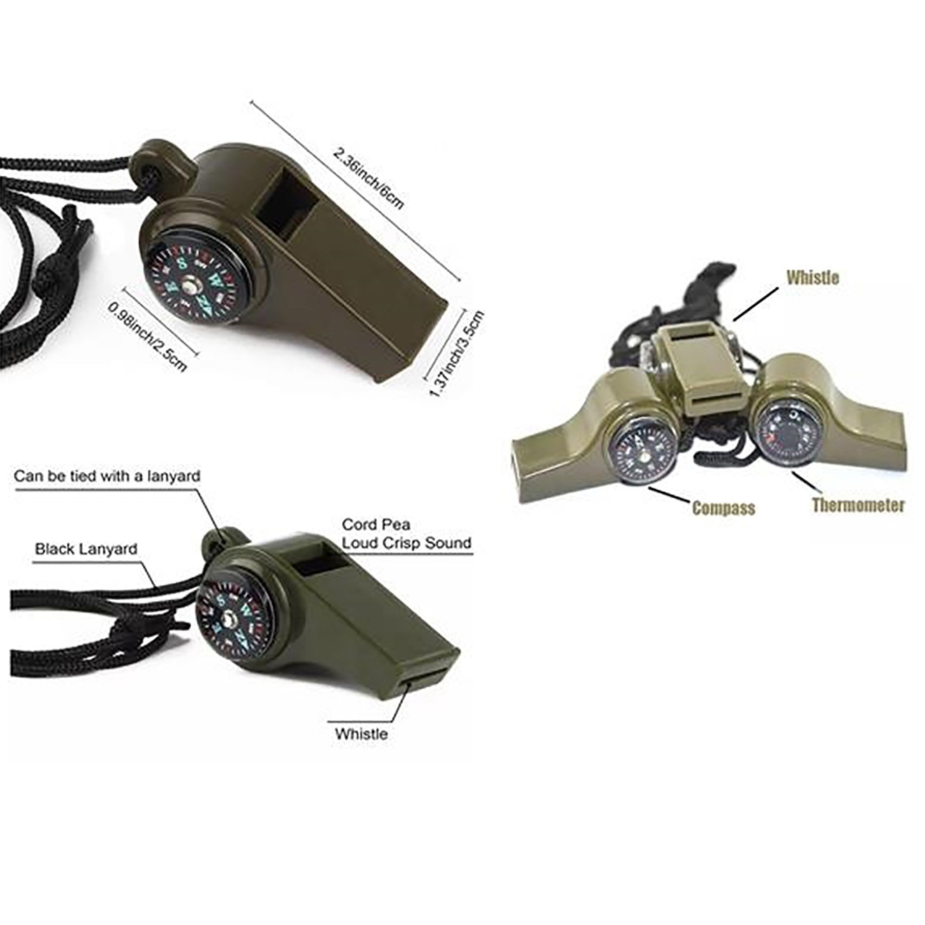 Our premium survival whistle is made of waterproof ABS material, emitting a powerful 120-decibel sound for outdoor emergencies. It contains a compass and thermometer for navigation and temperature monitoring, and comes with a neck lanyard for easy access. Perfect for camping, hiking, cycling, skiing, and more. 2.36″ L x 1.37″ W x 1″ H