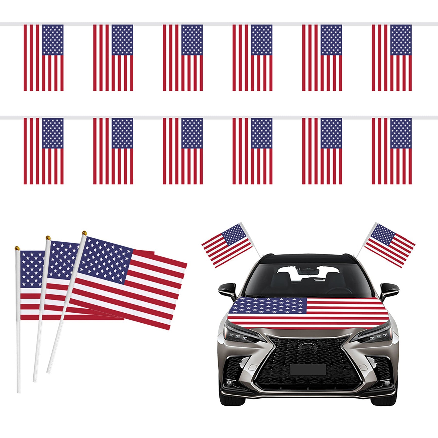 The flags are made of durable polyester, while the sticks feature a safety cap for employee protection. Versatile for parties and decorations, place these mini flags on tables, cups, backyards, gardens, playgrounds, flower pots, and more. This mini american flag is an excellent choice for outdoor fourth of July decorations, perfect for waving and display. The flag with stick is sized just right for waving and decorating. Ideal for independence day, suitable for home display or business conference rooms. 5.51″ L x 8.27″ W