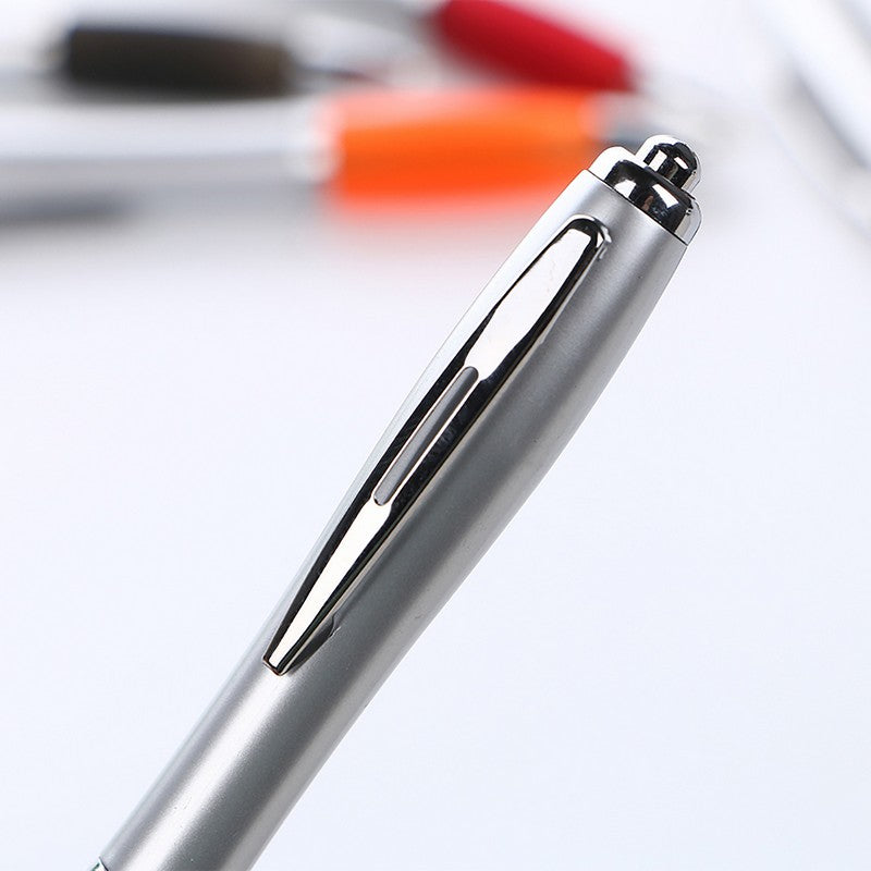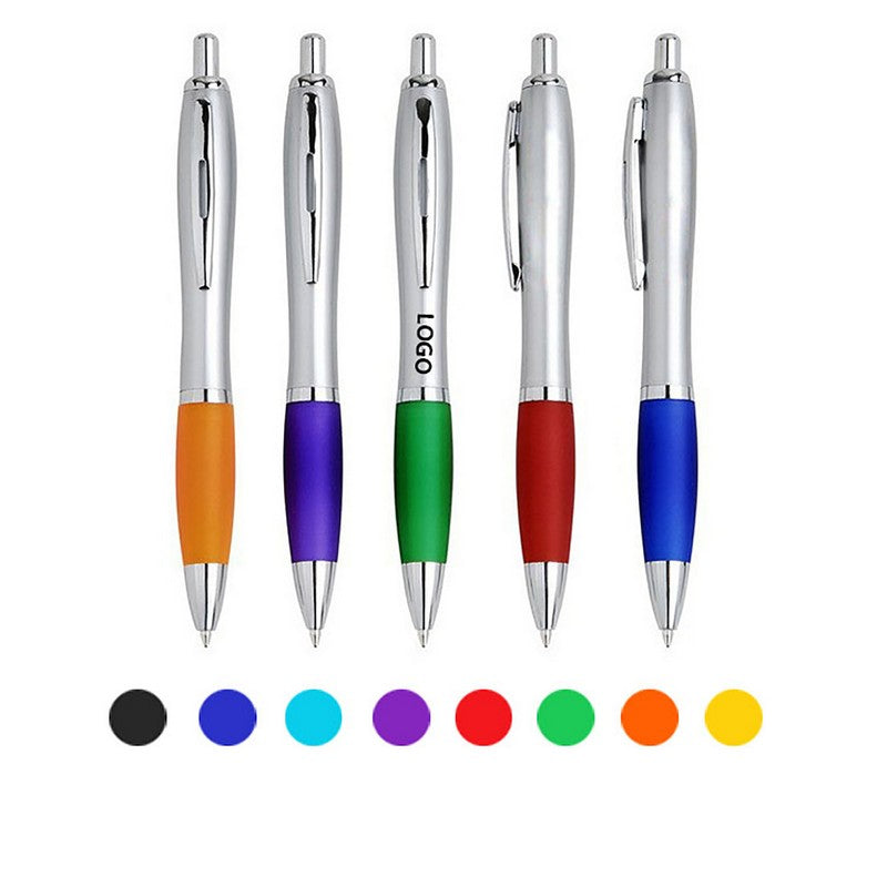 Stand out at your event with the sleek Carnival ballpoint pen. This stylish pen features a chrome tip and plunger, along with a chic accent ring on the barrel. Leave a lasting impression and leave your competition in the dust. 5.8′ L x 0.4′ W