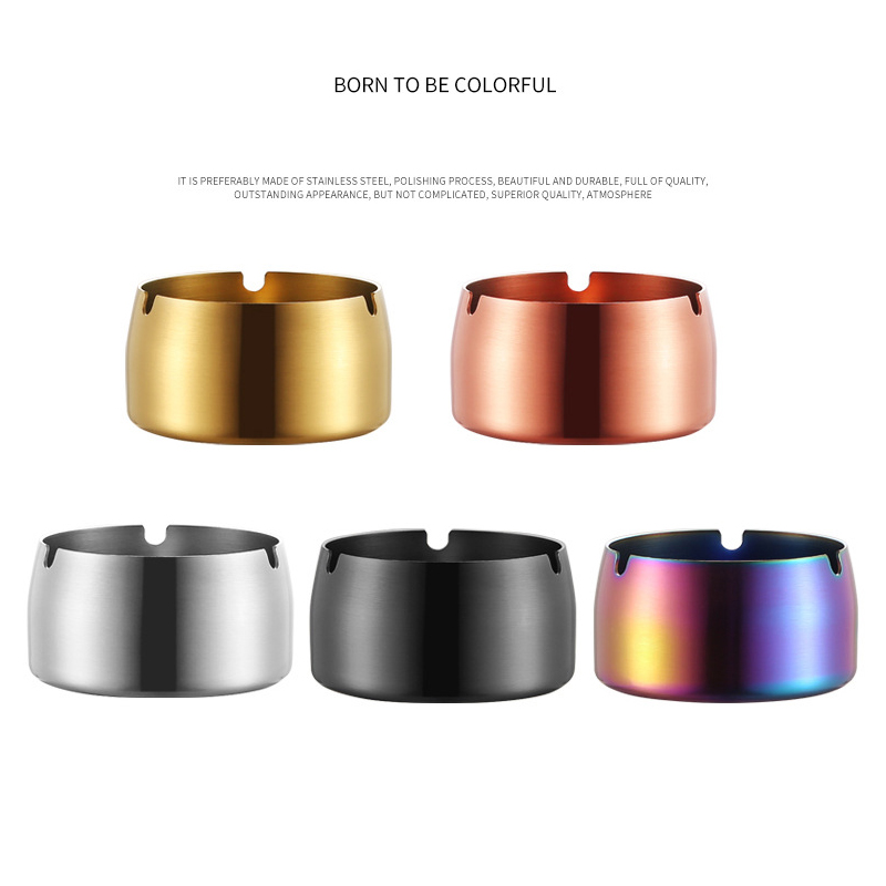This ashtray is made of high-quality rust-proof stainless steel with three cigarette grooves and is perfect for sitting on tables at bars or at home. This stainless steel ashtray is lead free, durable, lightweight, and easy to clean. The small dish is great for collecting ash without leaving a stain or smell. It can also be used as a dish for candies, jewelry, or small office supplies. It makes a bright and fun addition to bar tops, coffee tables, or office desks. Logo welcome to customize.