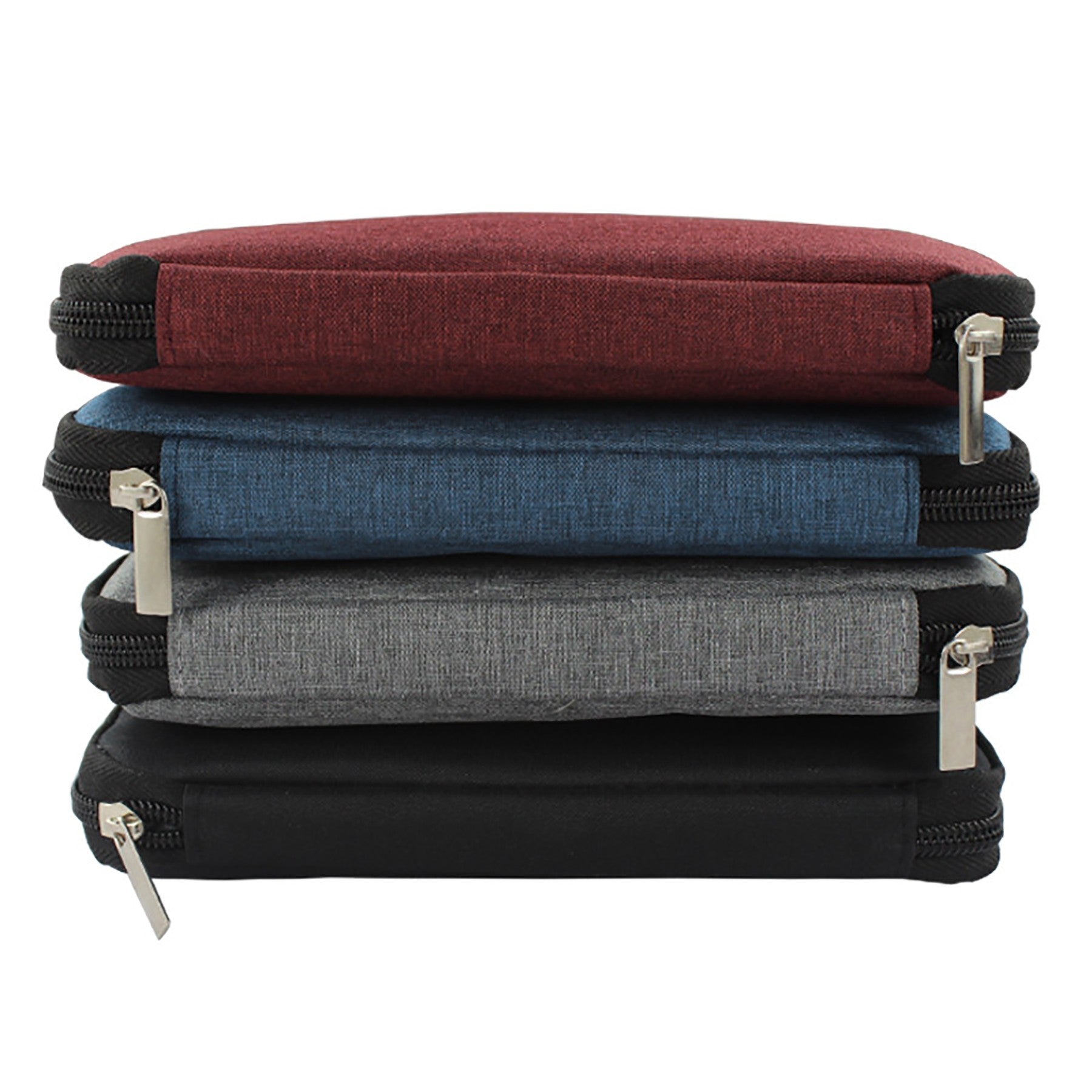 This multipurpose storage bag can hold all your essentials in one place, contains a power adapter, charger, battery, hard drive, memory card, camera, pen, selfie stick, cables, first aid kit, USB cables, scissors, makeup, passport, key, phone, and more. Stay organized and prepared with this spacious bag. 6.3″ L x 4.33″ W x 1.99″ H