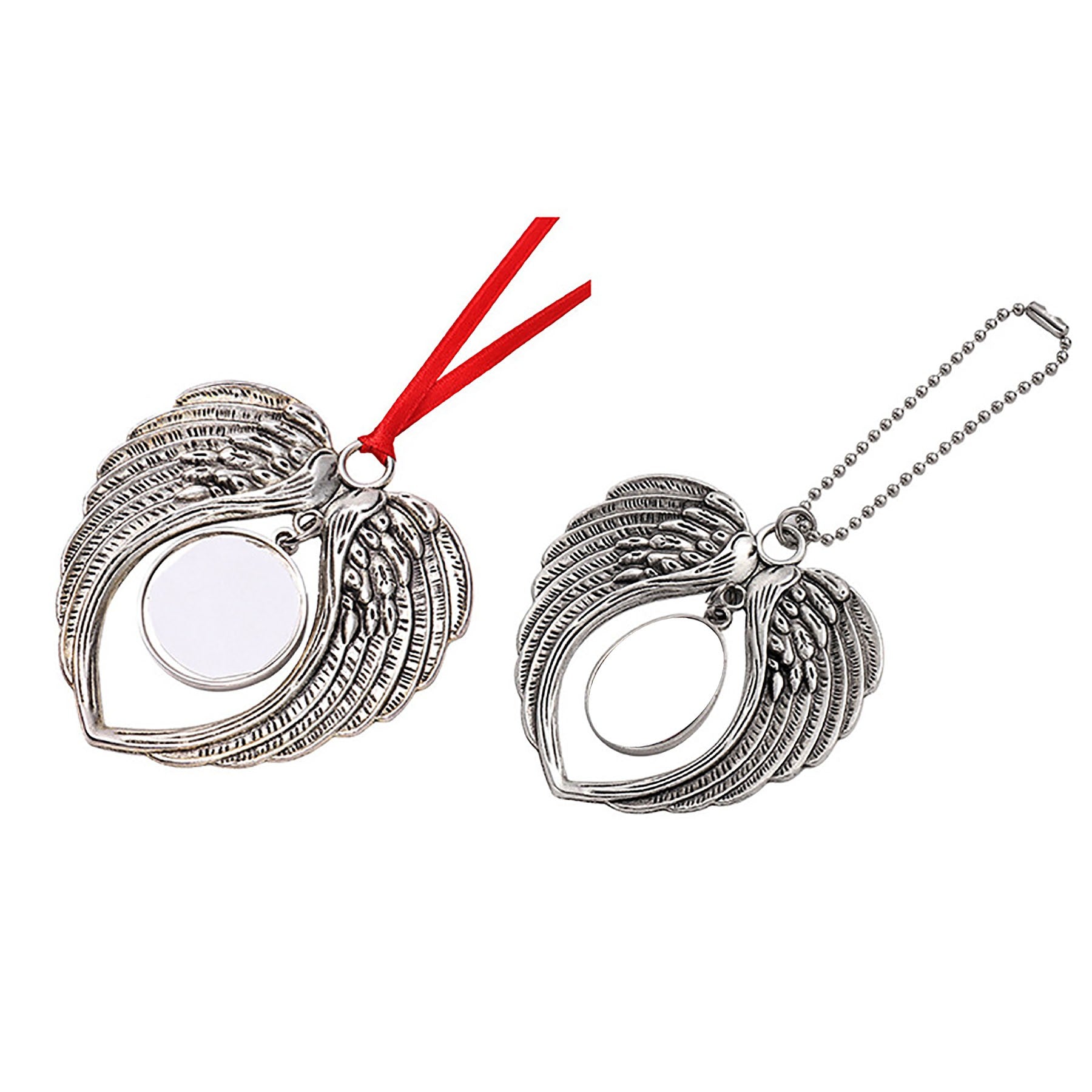 Christmas ornament for double-sided angel wing feels surrounded by the love of your precious ones who are in heaven. Hanging from the silk ribbon, this memorial ornament will add class to your Christmas tree or room wall. This unique Christmas ornament is ready to offer as an exquisite memorial gift to a friend who is mourning they are lost loved one or furry friend. 2 5/8″ L x 2 6/8″ W