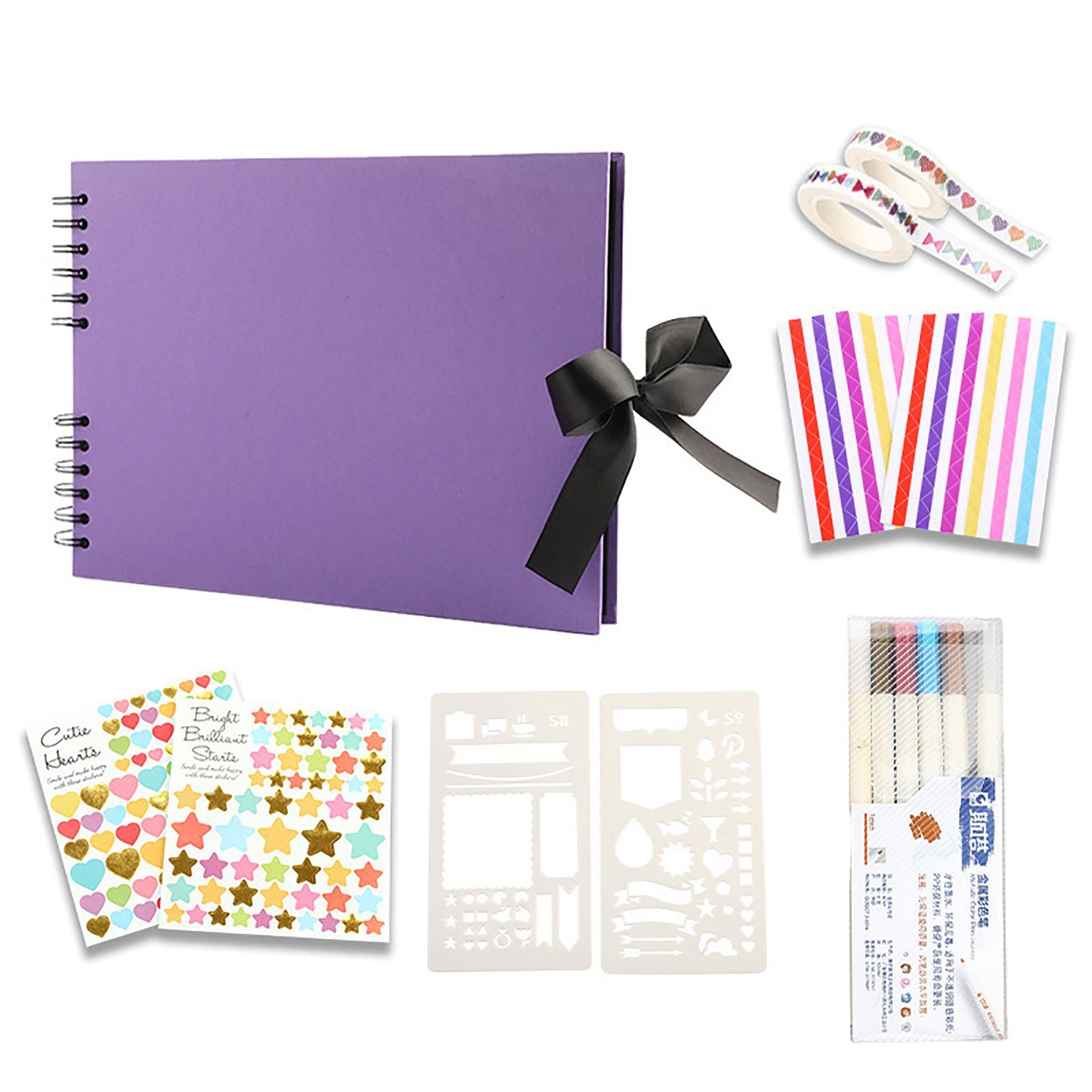 This DIY scrapbook album allows you to unleash your creativity. It has 80 black pages, holds over 240 photos, and features a premium cardboard cover with thick black inner pages made of kraft paper. The spiral binding allows for 360-degree rotation. Wrap-around ribbon seals add elegance and durability. 11.4″ L x 8.5″ W x 0.78″ H