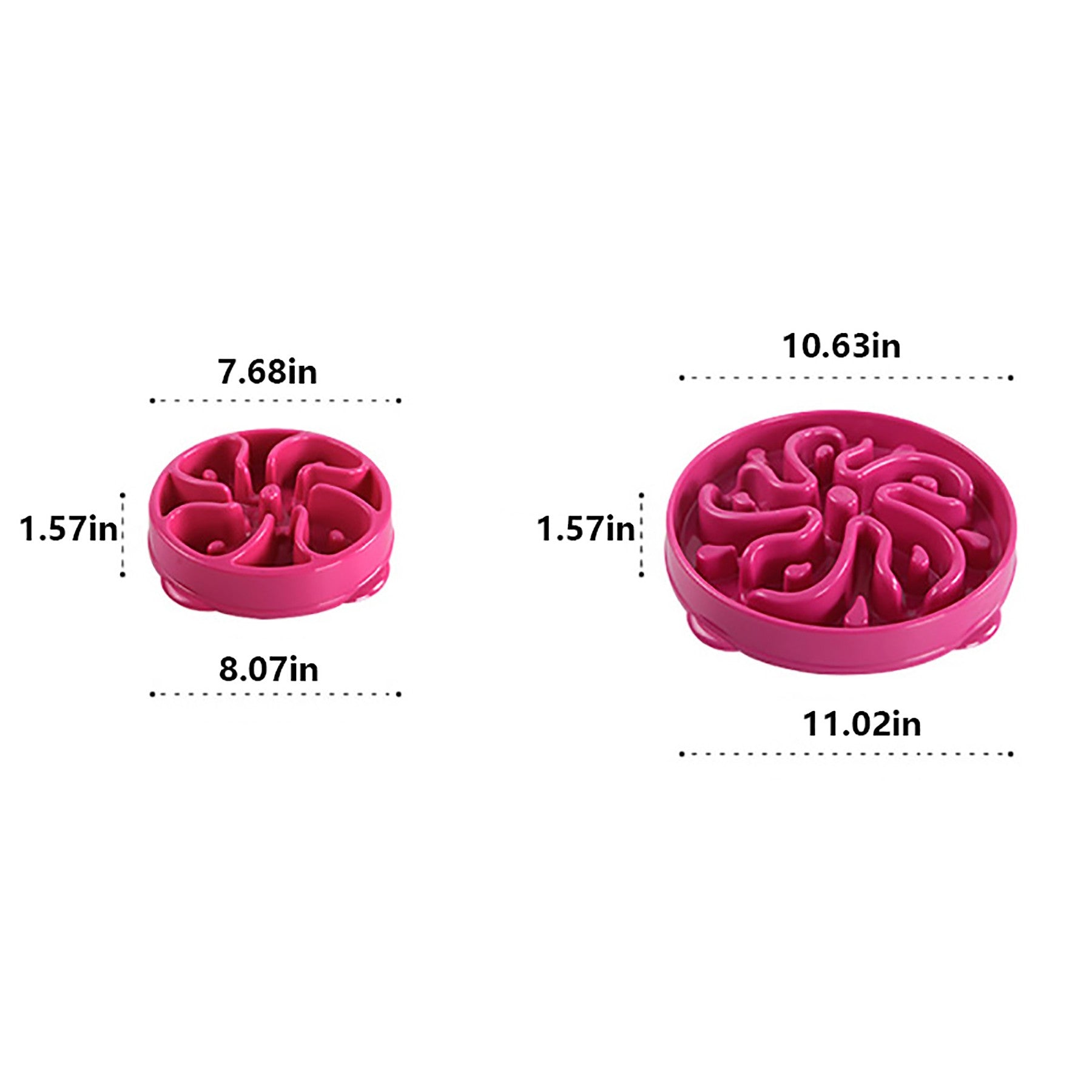 Fun Feeder slo-bowls slow down rapid eating, promote healthy eating, and prevent choking. They help control pet weight, extend meal time, and prevent indigestion. The swirl flower design adds fun to mealtime. The package contains four non-slip mats and two suction cups for stability. The widened base with anti-skid pads prevents tipping. Works with dry or wet food to help dogs feel full on less food. 8″ L x 2″ W