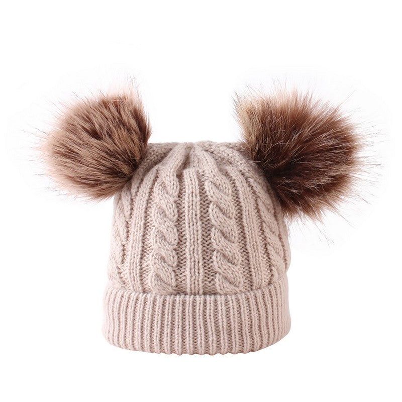 Double Pom Pom Beanie Toddler Winter Knitted Hat
