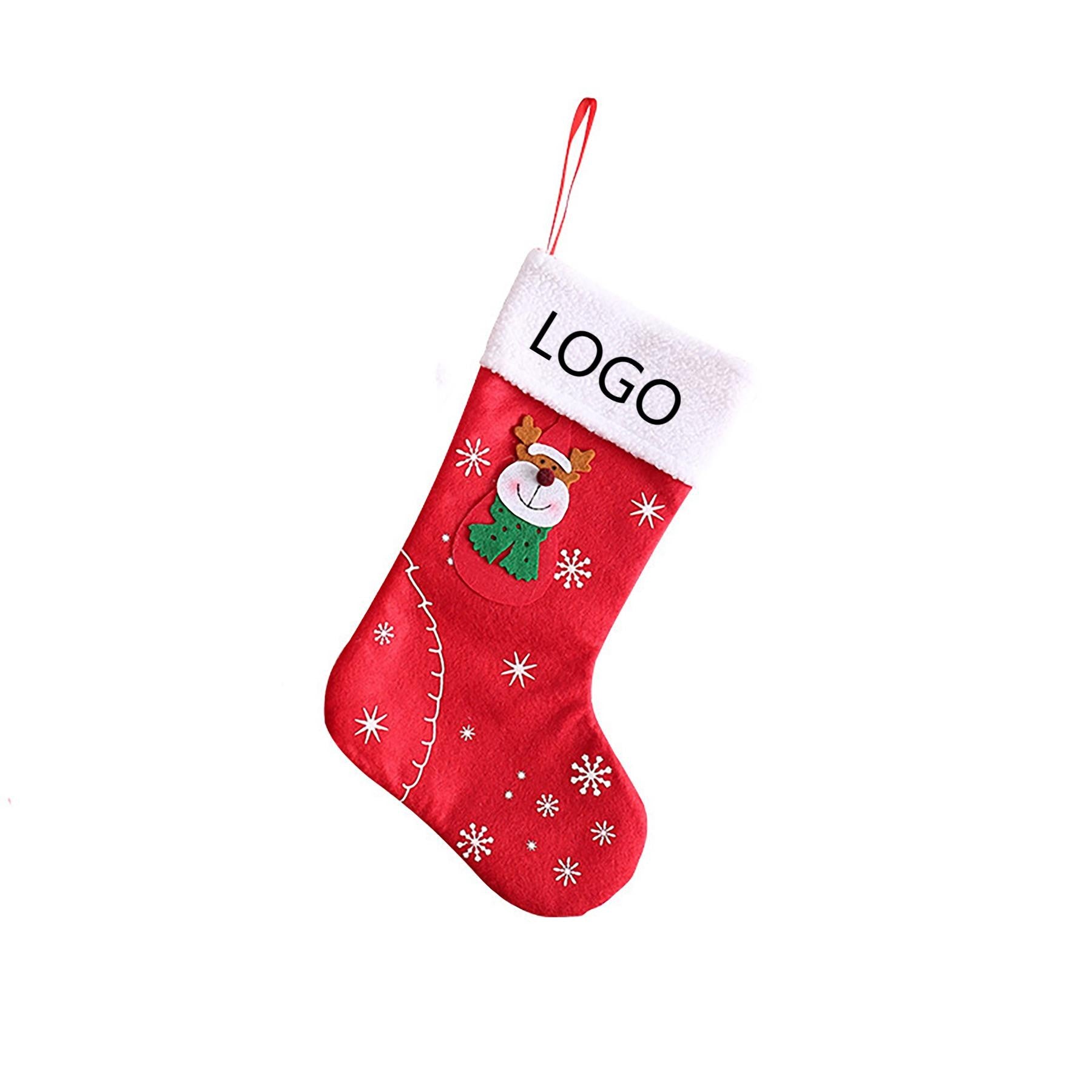Upgrade your holiday decor with premium Santa socks, great for walls, doors, or the Christmas tree. These hanging stockings are charming decorations and convenient storage for candy, chocolate, and ornaments. Add them to your display for a festive touch. Personalize with your own logos for a unique touch. 18.5″ L x 8.625″ W