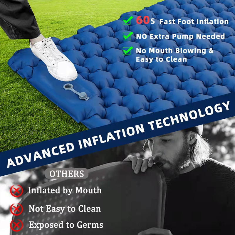 Our sleeping mat adopts an ergonomic texture design to the surface, combines ultra-thick 40D nylon and TPU environmental protection material, water resistant, rip resistant, helping people sleep well with more support for better balancing.The comfortable size ( 6.56ft x 3.94ft x 0.2ft / 200cm x 120cm x 6cm) offers excellent stability and cushioning. Lightweight, foldable, and portable, which making a must for trips and camping, very suitable for outdoor trekking, backpacking, bike-packing, kayaking, canoe touring, car camping.Your logo is welcome. It could be customized as well.
