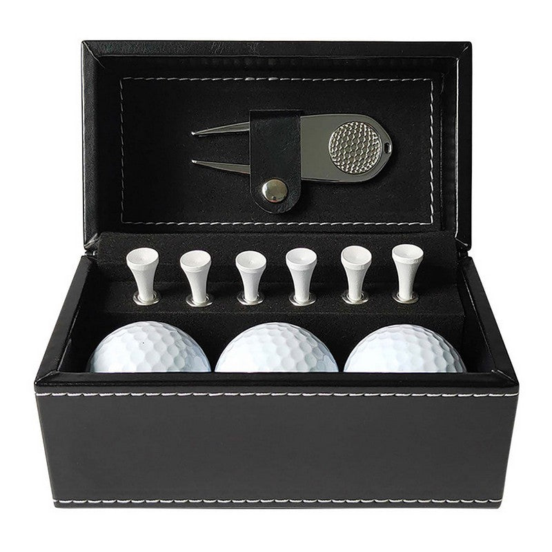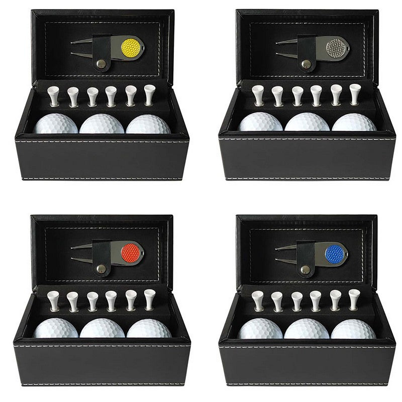 Contains 6 tees(54mm), 3 balls and 1 golf divot repair tool.Adopted quality core for maximum distance and soft respond.Can be combined with golf accessories at random.Ergonomically designed divot repair tool fits in your hand easily and comfortably.Durable cover provides long-lasting playability.Gifted leather case makes the items neat and orderly.Great for Corporate events, loved ones, promotional gifts and golf tournaments.’. 5.7′ L x 3.1′ W x 3.5′ H