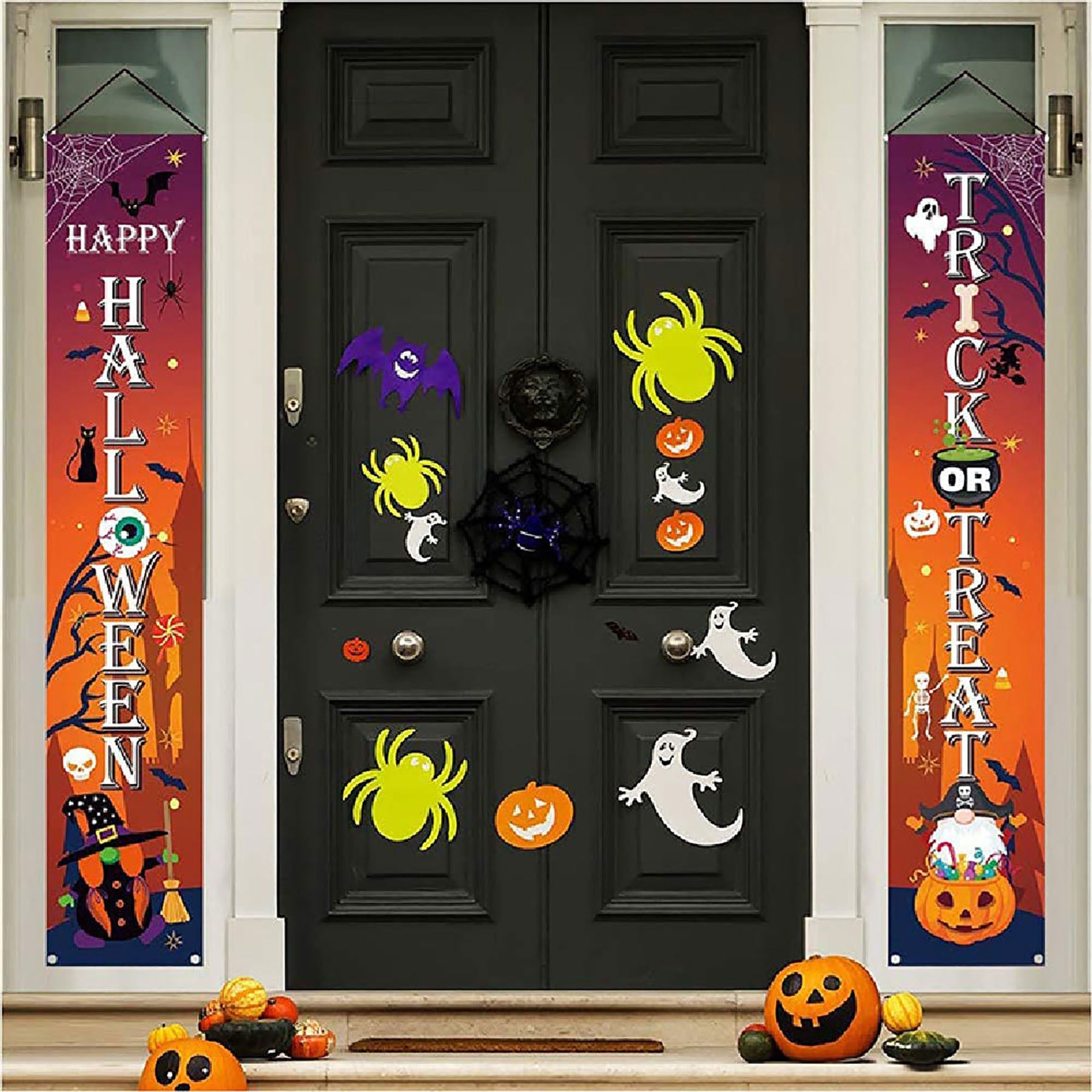 Halloween couplet pumpkin gate flag, bring you a different Halloween.Decorate in the doorway to let your home appear particularly distinctive, add Halloween atmosphere. 11 13/16″ L x 70 7/8″ W