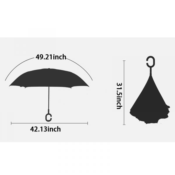 Made of light and waterproof pongee fabric. Using a high-quality stainless steel frame, so the body is firm and able to withstand strong winds. Reverse folding umbrella design concept. You can open this inverted umbrella as you open the door or car and not get wet. The eight steel balls of the frame are transformed into eight legs upon contracting the umbrella, which can stand up on its own. Ideal for when you have nowhere to prop your umbrella up against.