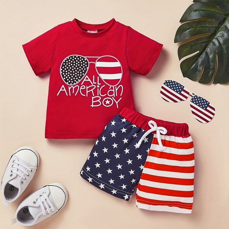 Elevate your baby’s style with this premium USA Flag unisex outfit. Made from a luxurious cotton blend, it’s breathable and lightweight for maximum comfort. The set a short sleeve tee with o-neck collar and American flag print shorts. Available in different colors and sizes for infants 0-24 months, perfect for summer. Treat your baby or gift it for a special occasion. 19.7″ L x 11.8″ W x 11.8″ H