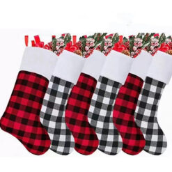 These black and white plaid cotton Christmas stockings are soft, comfortable, and durable with clear printing. They have a large capacity for holding gifts, candy canes, gift cards, chocolates, snacks, and more, showcasing a creative vibe. The red, black, and white design is attractive and popular, creating a romantic atmosphere. Equipped with a rope for easy hanging on Christmas trees, doors, fireplaces, and other locations, they are convenient and eye-catching for guests. 9.45′ L x 17.32′ W x 17.32′ H