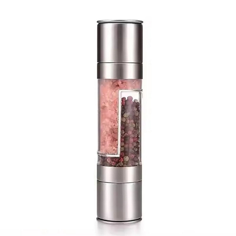2′ 1 grinder combines pepper mill and salt grinder in one container, which effectively saves space in your cabinet. Wide opening ensures easy filling and cleaning. The pepper mills grinder are equipped with ceramic grinder system to ensure quick and smooth grinding. The top and bottom are made out of a durable stainless steel. And body is made out of strong clear acrylic. Perfect for grinding salt, pepper and other spices. There is a knob, simply twist the knob to adjust the fineness of the grinding depending on the dishes or your tastes, can be used with all kinds of peppercorns, sea salts, himalayan salt, dried herb or other spices. Each end of the grinder has a cap that can be sealed well when you not use it to prevents leakage, moisture or dust and keep your spice fresh and dry. 1.97′ L x 7.99′ W