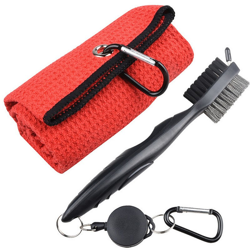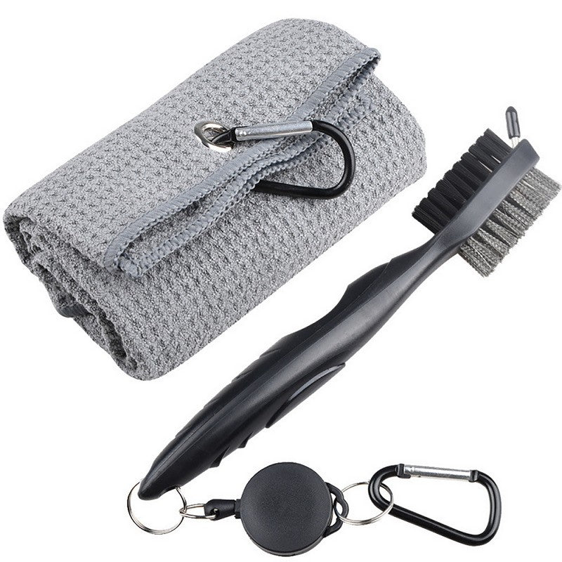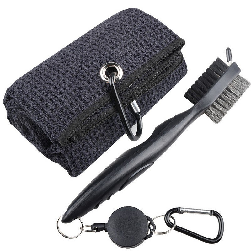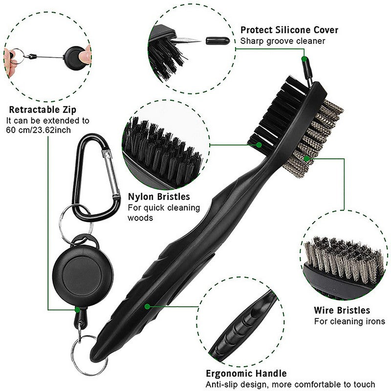 Easily attach this compact club brush to your golf bag for quick access on the course. Clean your golf ball and clubs effortlessly with its powerful brush and durable materials. The retractable 2′ zip-line carabiner makes it simple to attach. This tool is perfect for cleaning clubs and spikes, with a spike for reaching deep into grooves and cleaning golf shoes effectively. Elevate your game with this high-quality club brush. 15.7′ L x 15.7′ W