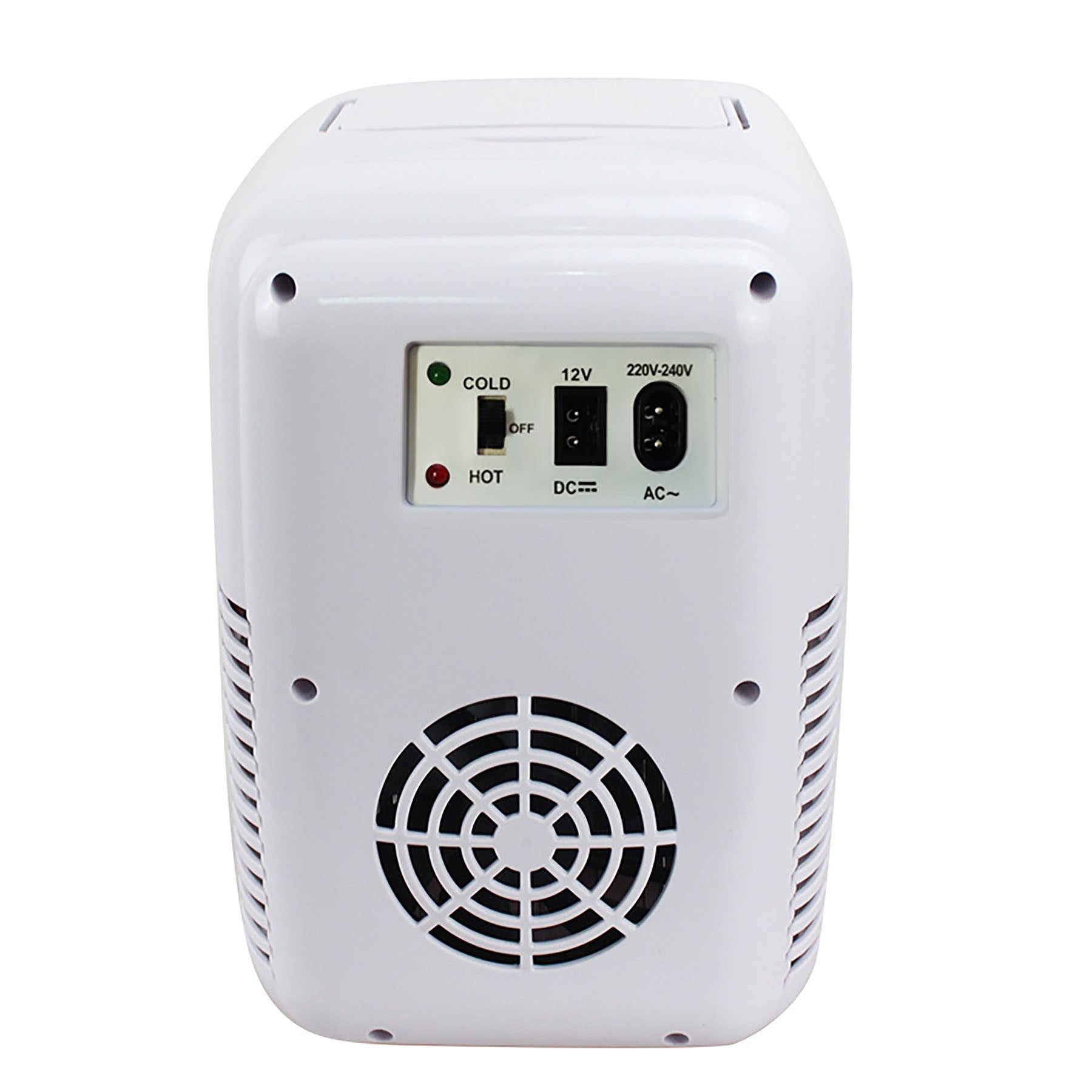 This mini fridge is compact and versatile, perfect for desktops or in a car. It can reach 60-80 degrees Celsius when heating (red) and 8-10 degrees Celsius when cooling (green). It has a switch to easily switch between heating and cooling functions, no batteries needed. The insulation material improves the cooling and heating efficiency. 9 4/5″ L x 10 2/5″ W x 7 1/5″ H