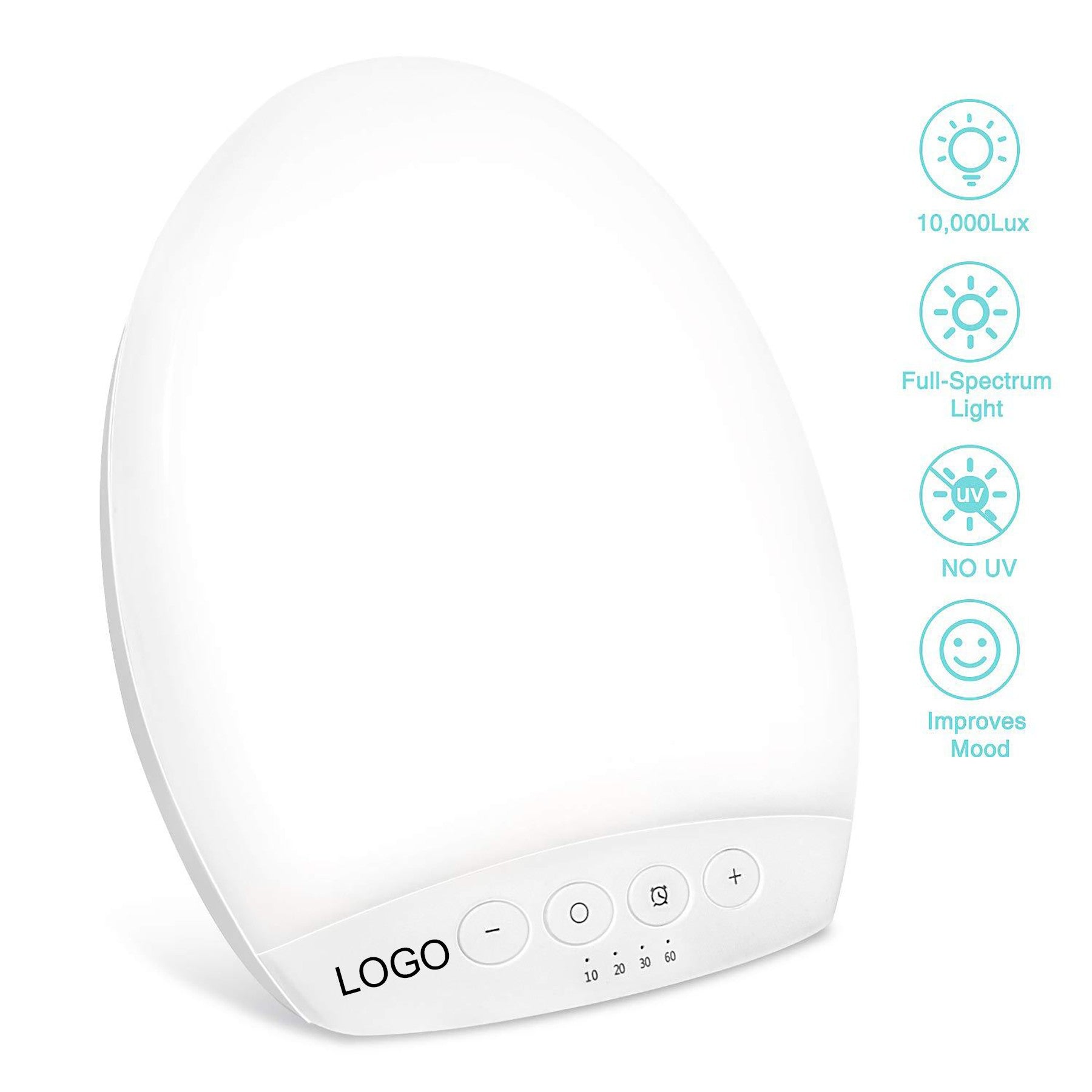 With a 6,000lux/10,000 lux intensity, bring 6000-6500K light to provide you with your daily boost of sunshine and help you keep energetic and focused. Compact size with foldable bracket makes the lamp easy to store and carry; it fits next to your laptop, on the kitchen counter, on your cubicle desk, and elsewhere. A custom logo is available. 5 5/8″ L x 5 1/2″ W x 3/8″ H