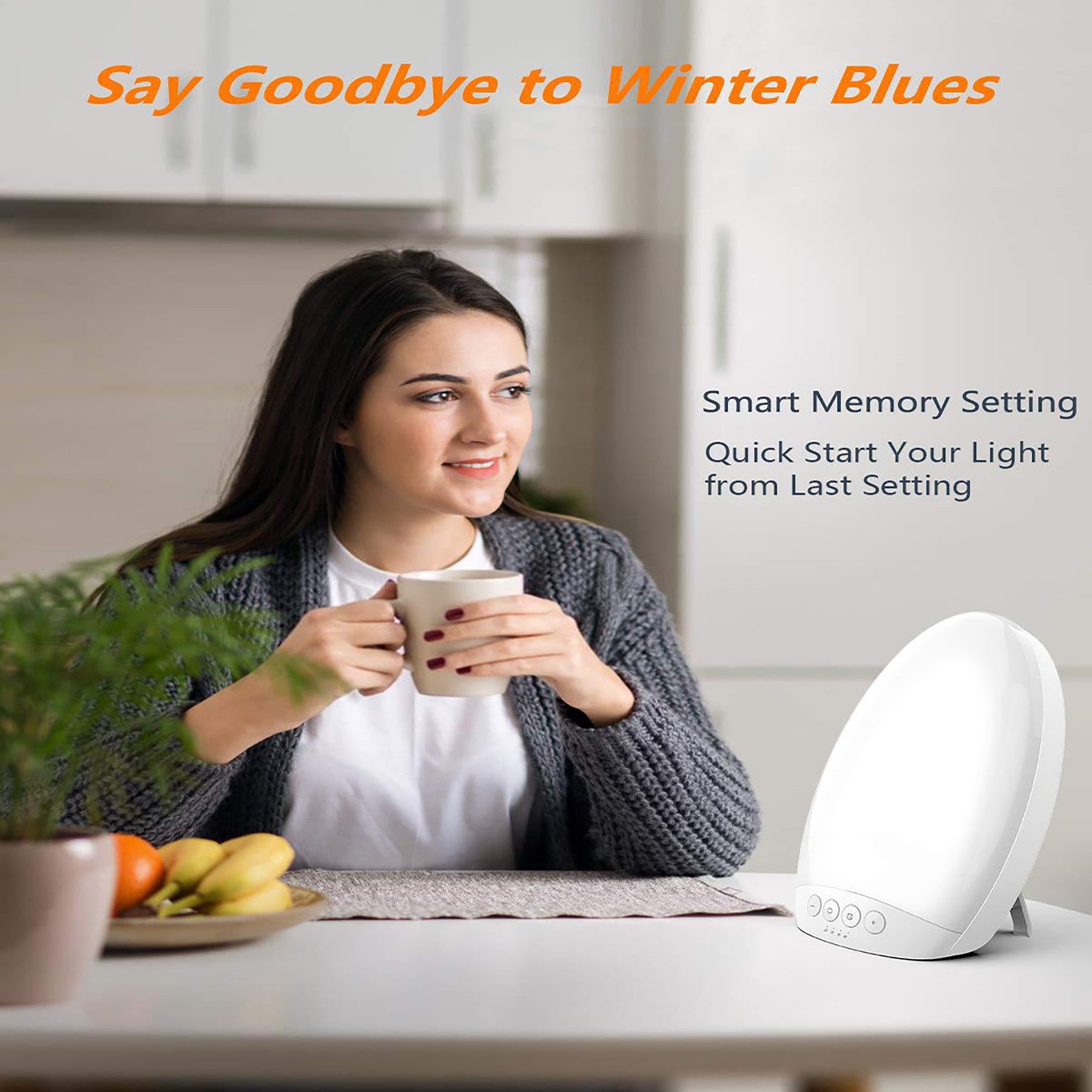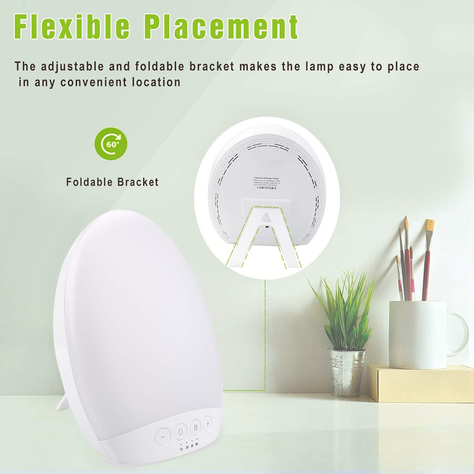 Light therapy lamp provides natural light that can boost mood and enhance concentration. Adjust brightness with a button on the lamp body based on environment, distance, and sensitivity. 7.09″ L x 8.66″ W