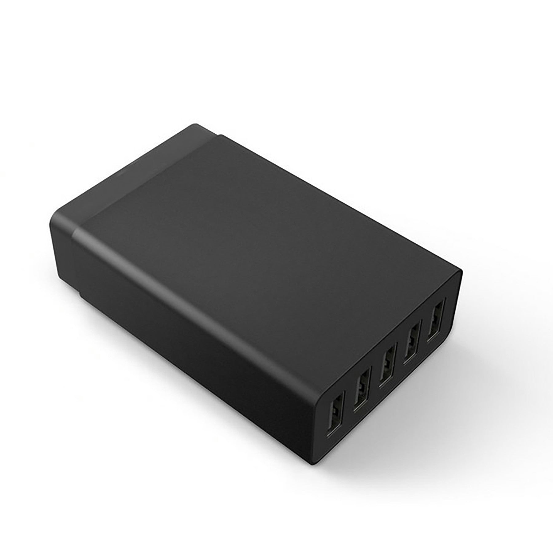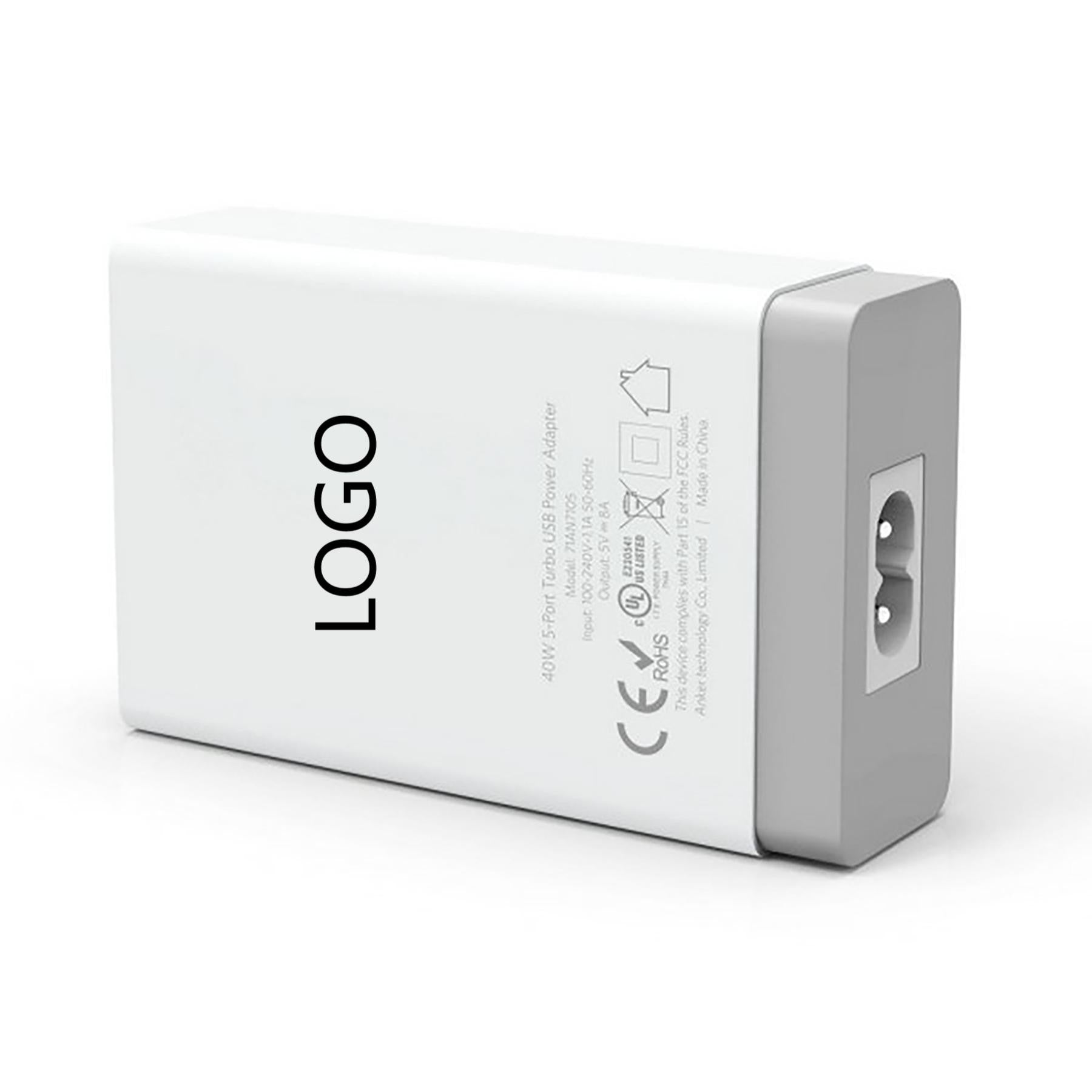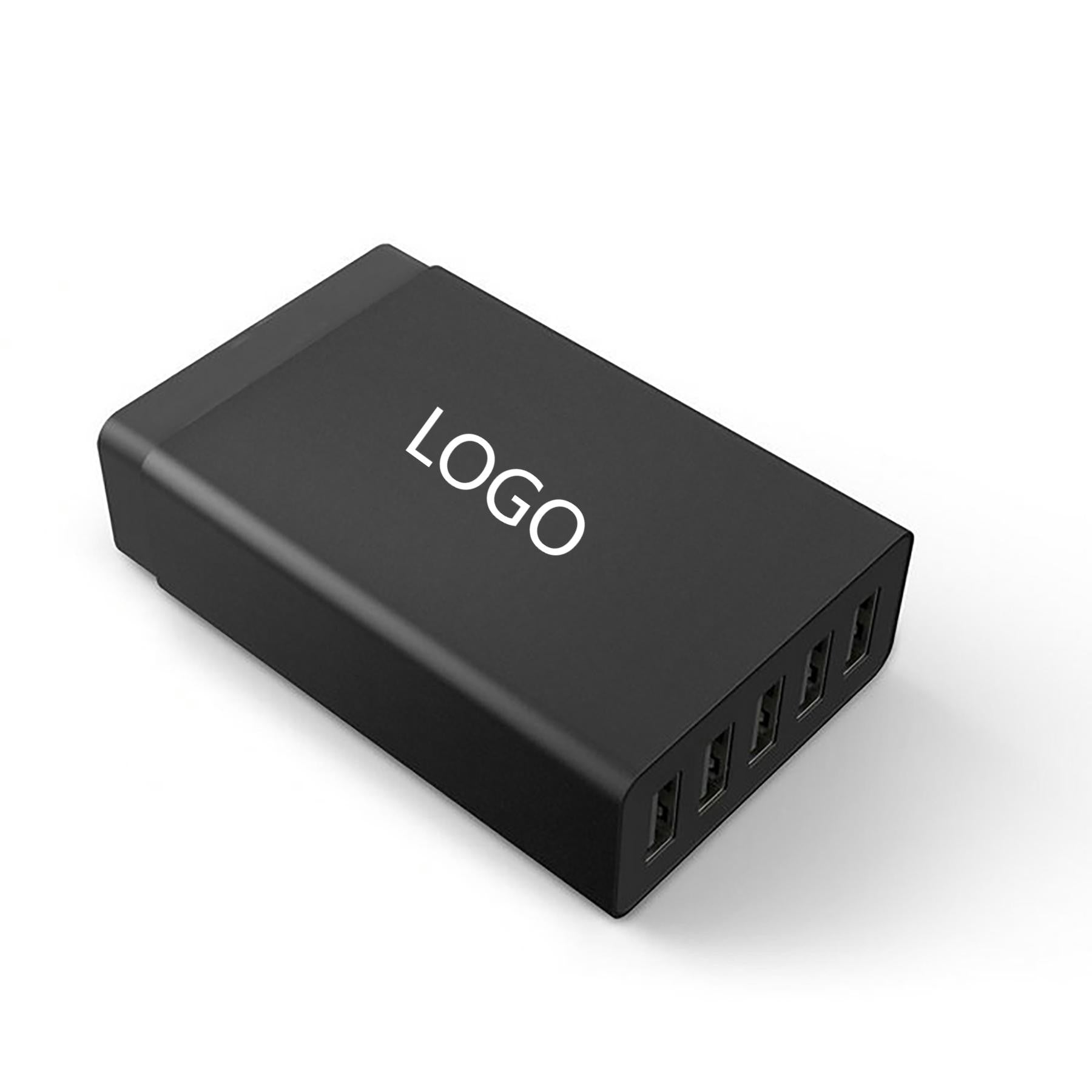 5-port USB smart charger with intelligent current distribution to protect devices. Compatible with standard USB data cables for charging digital devices. Wall plug with overcharge and short-circuit protection. Prevents damage from voltage fluctuations, ensuring safe and stable charging every time. 3.58″ L x 2.28″ W x 1.02″ H