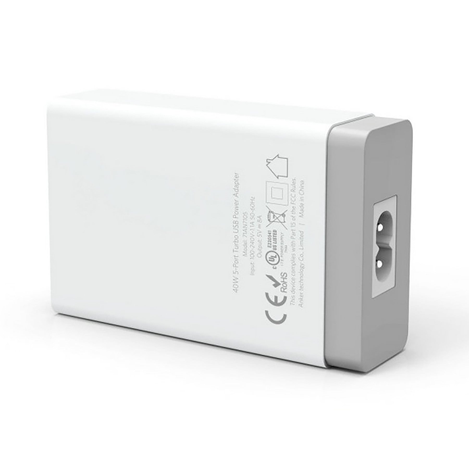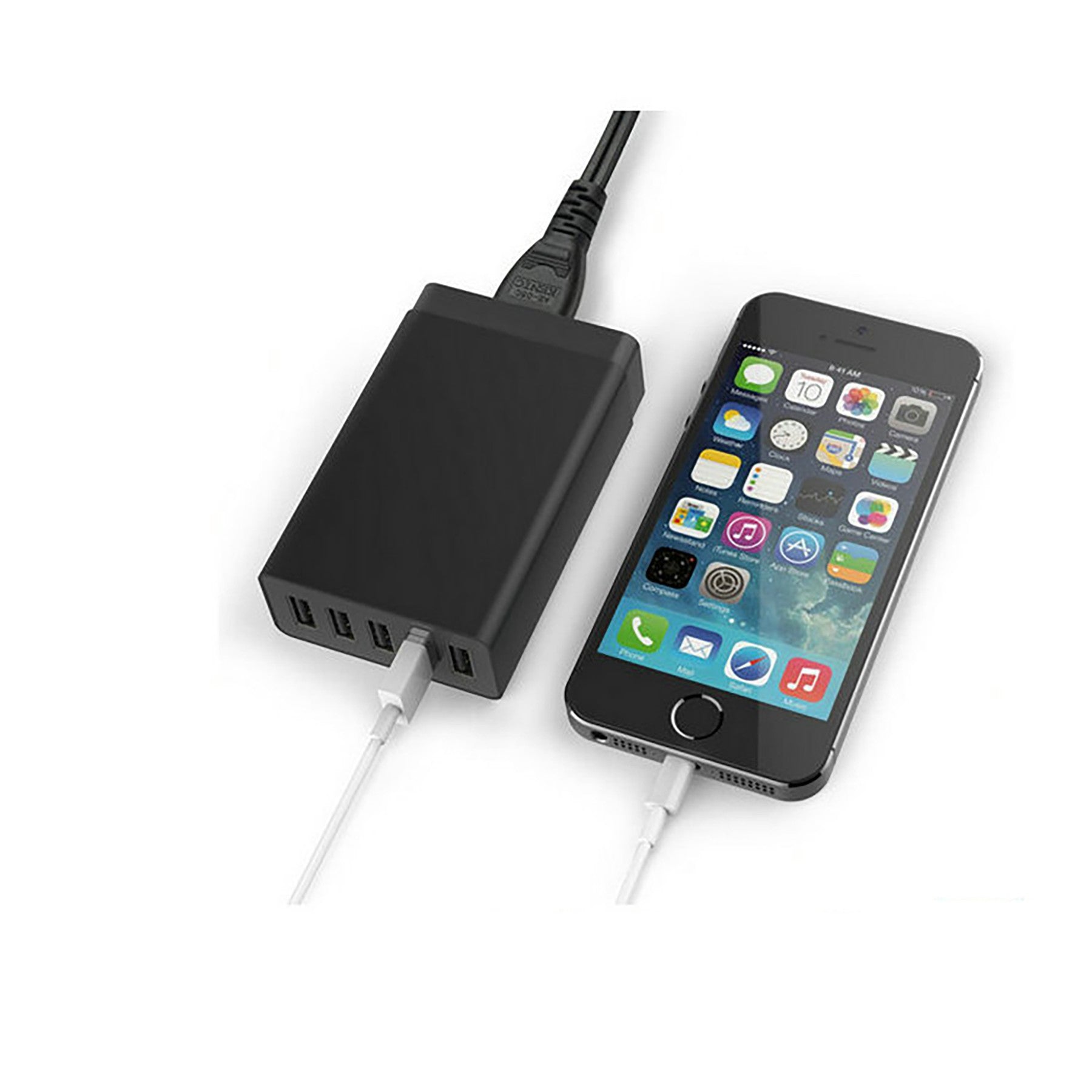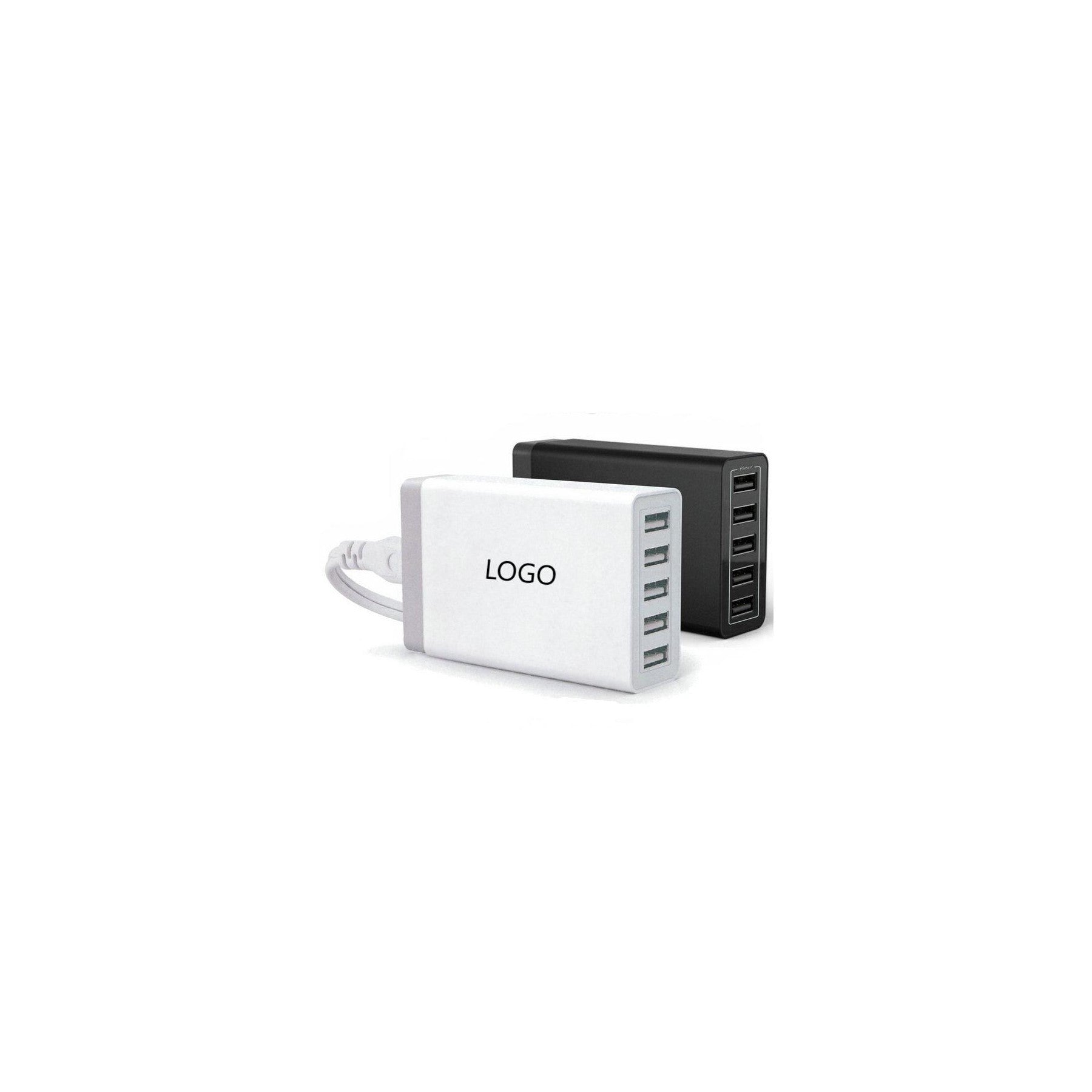 5-port USB smart charger with intelligent current distribution to protect devices. Compatible with standard USB data cables for charging digital devices. Wall plug with overcharge and short-circuit protection. Prevents damage from voltage fluctuations, ensuring safe and stable charging every time. 3.58″ L x 2.28″ W x 1.02″ H