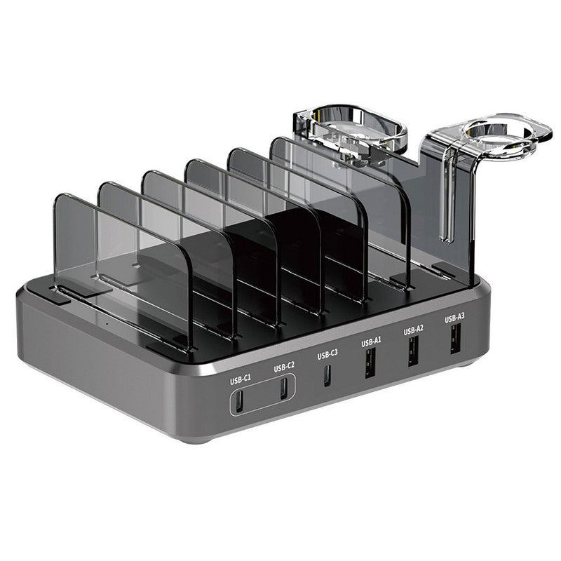 Experience the cutting-edge technology with our 6-port PD Intelligent Charger featuring intelligent recognition of PD3.0 and C3.0. The charger comes equipped with seven detachable partitions, allowing you to adjust the spacing based on the thickness of your charging device. Crafted from high-toughness PC material, this charger is not only durable but also exceptionally strong, ensuring it won’t easily break. Elevate your charging experience with our premium quality charger that is designed to meet all your needs. 6.69′ L x 5.12′ W x 1.5′ H