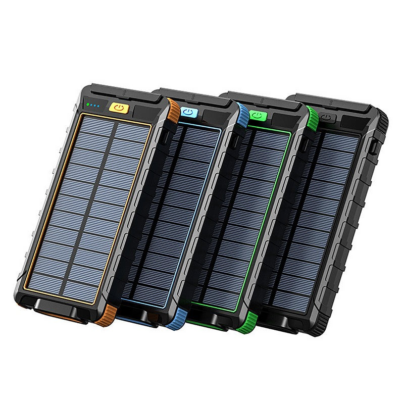 The 10000mah solar power bank is made of eco-friendly materials and is anti-drop and dust-proof. It supports wireless charging, allowing for convenient charging. With built-in outdoor camping lights, this solar charger is perfect for camping, traveling, hiking, and other outdoor activities. 6.57′ L x 3.5′ W x 0.71′ H