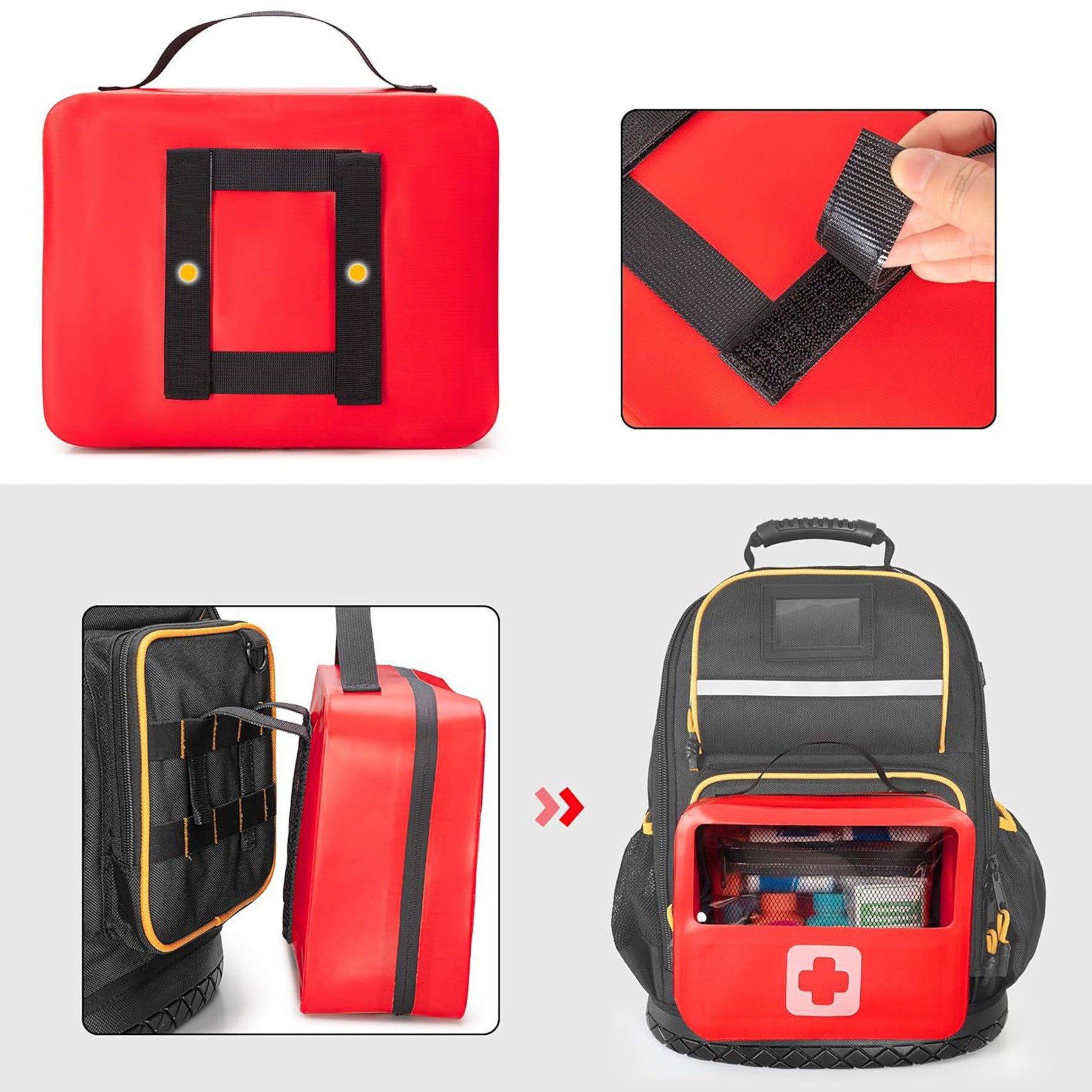 The first aid bag features 4 bright colors and a transparent layer design, which can help you quickly find items in emergency situations or quickly locate the items you need with the help of others. Very suitable for classification or mutual assistance purposes. Mainly made of high-quality oxford cloth and safe pvc material, the medical supplies bag storage bag is non fading, sturdy, not easy to tear or wear, and can be used for a long time. 8.27″ L x 3.94″ W x 2.95″ H