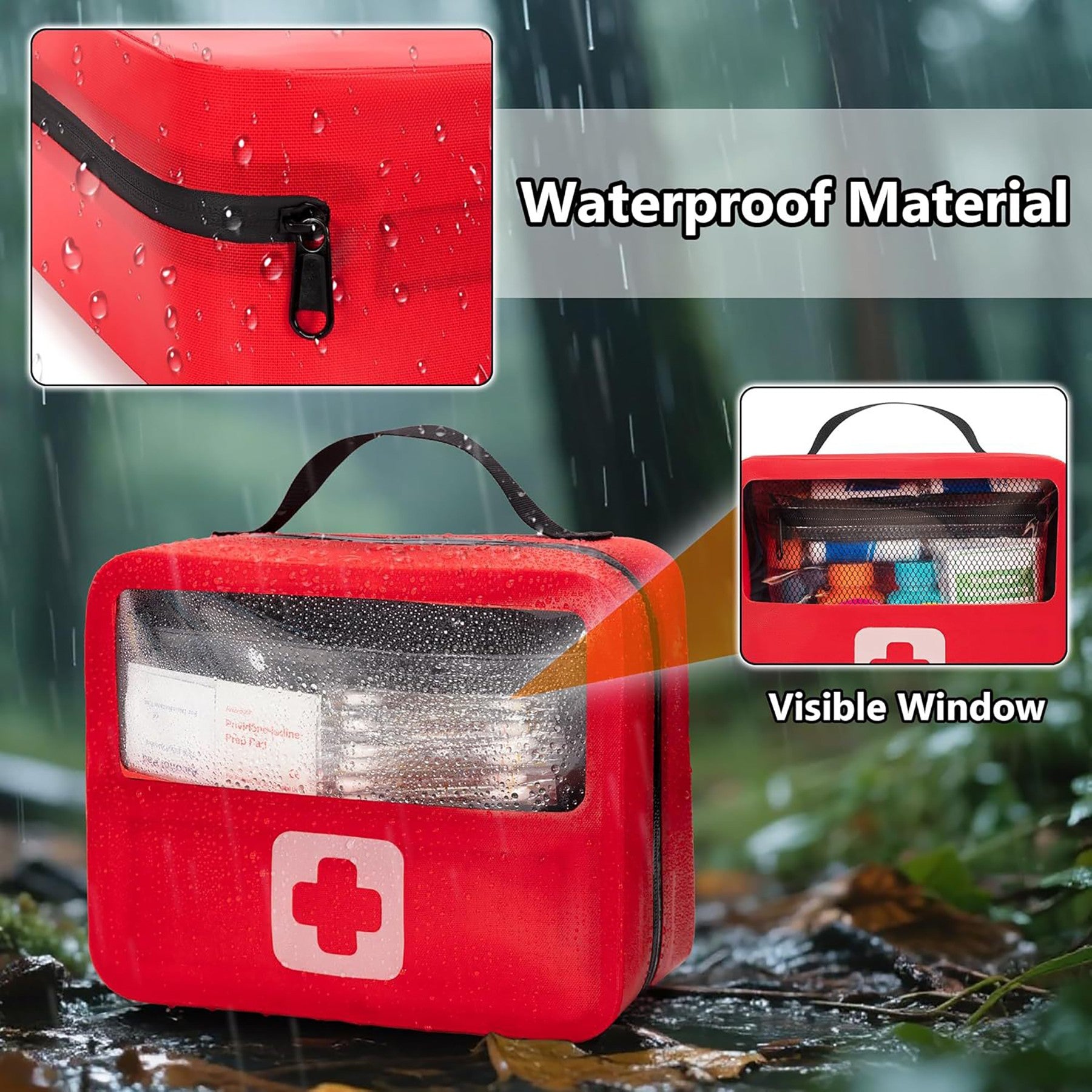 Made of sturdy oxford cloth material, lightweight, waterproof, and durable. The transparent pvc front window allows you to quickly view and locate your supplies without opening the bag, making emergency response more efficient. Equipped with sturdy handles for easy portability. Even with frequent daily use, the smooth reinforced zipper can provide reliable opening and closing function. Very suitable for storing small travel equipment or first aid items. Suitable for various occasions such as home, office, outdoor activities, hiking, camping, car, travel, emergency preparedness, etc. 10.24″ L x 8.27″ W x 3.94″ H