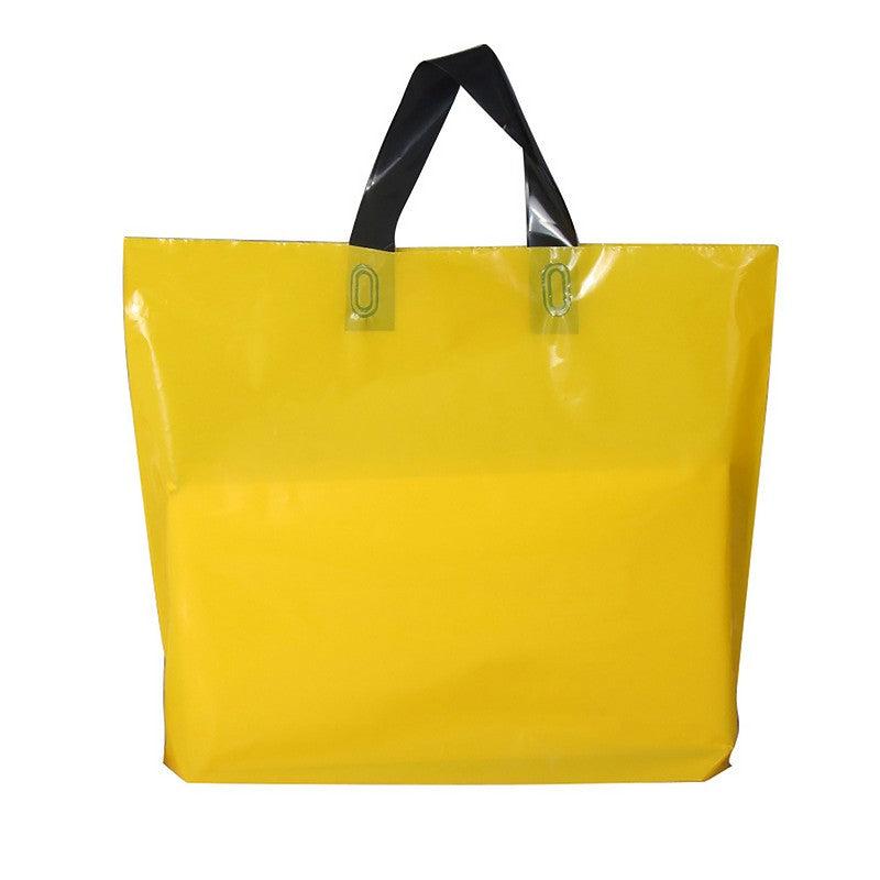 Made from durable polyethylene plastic with a reinforced handle, these soft loop bags are perfect for retail, T-shirt, clothing, and pastry shops. They are reusable and built to last, with a large imprint area for your logo and artwork to stand out. Available in various colors to make a bold statement with your branding. 13 3/4′ L x 3 15/16′ W x 10′ H