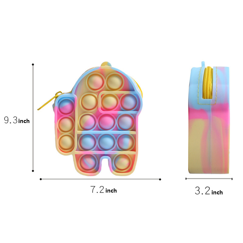 The most fashionable fidget toys combination for kids adults! Kids have a good time playing without worrying. Cute shape pop its toys, this colorful, simple sensory toys is made of high-quality non-toxic, edible silicone material with excellent craftsmanship, which makes it is soft, durable, washable, and reusable. Our mini fidget bubble toys can be used as a fashion accessory or as a coin purse. Press it anytime and anywhere to relieve your stress and anxiety. Custom logo available.