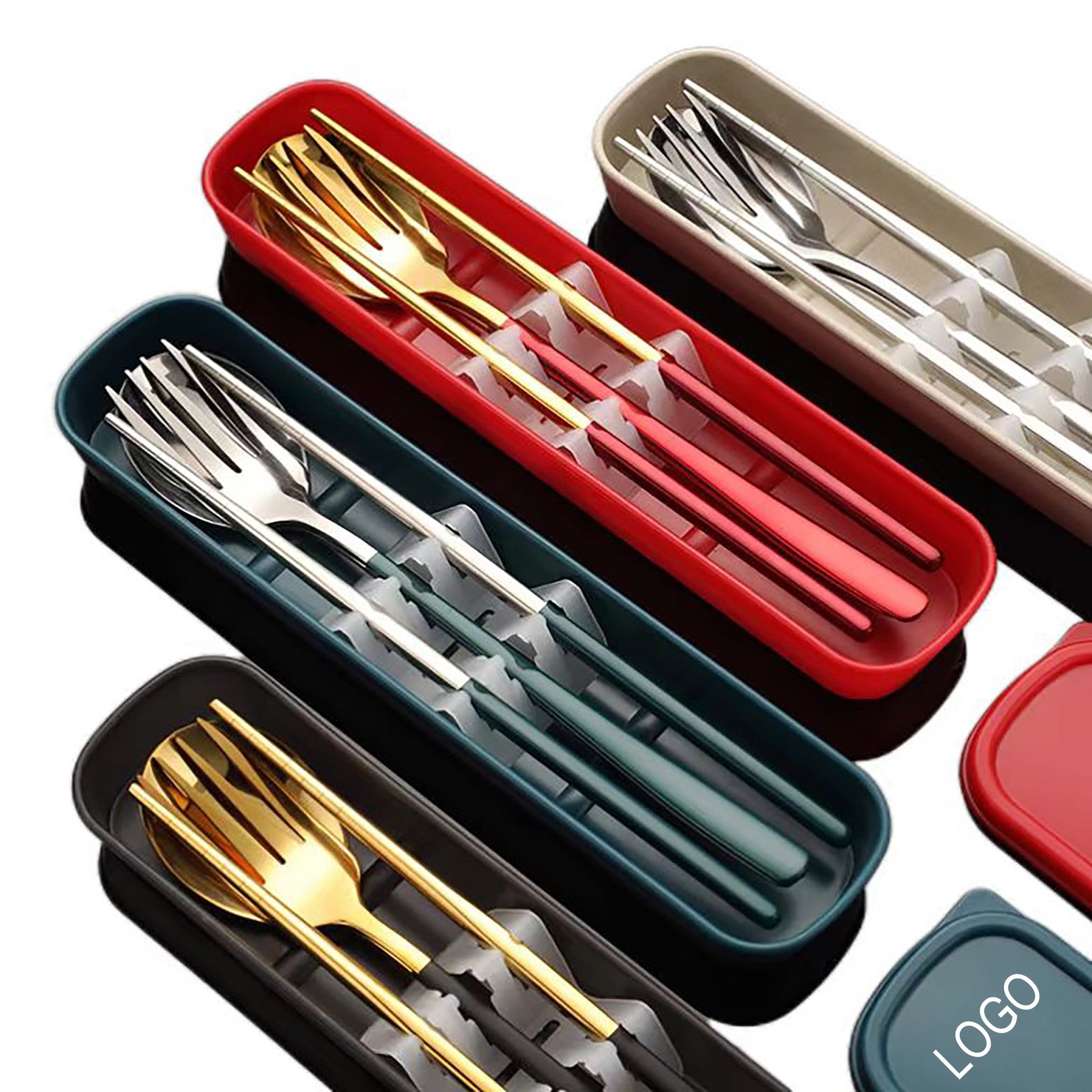The trendy kit makes a great table accessory for a dinner for 2 for everyday use, camping, BBQ or backyard parties, etc. It made of food grade stainless steel, which is rust-resistant, sturdy and durable. This set contains 2 forks, 2 spoon, 3 serrated knives, 2 plates, 1 bottle/wine opener and 1 cutlery storage bag. More color options and your logo is welcome. 9.5′ L x 9.5′ W x 0.25′ H